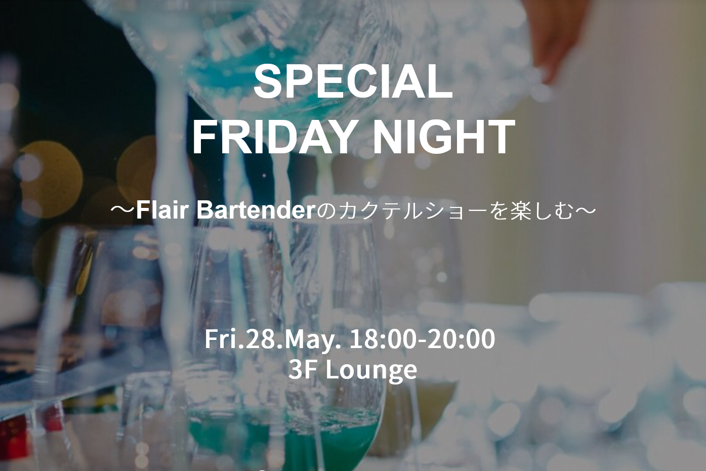 We will hold a flair bartending show by a flair bartender Mr.Yamada who became a world champion in the May “EPW Special Friday”. He makes cocktails by throwing and spinning bottles and shakers of liquor. You can enjoy an event that is a bit different from usual!