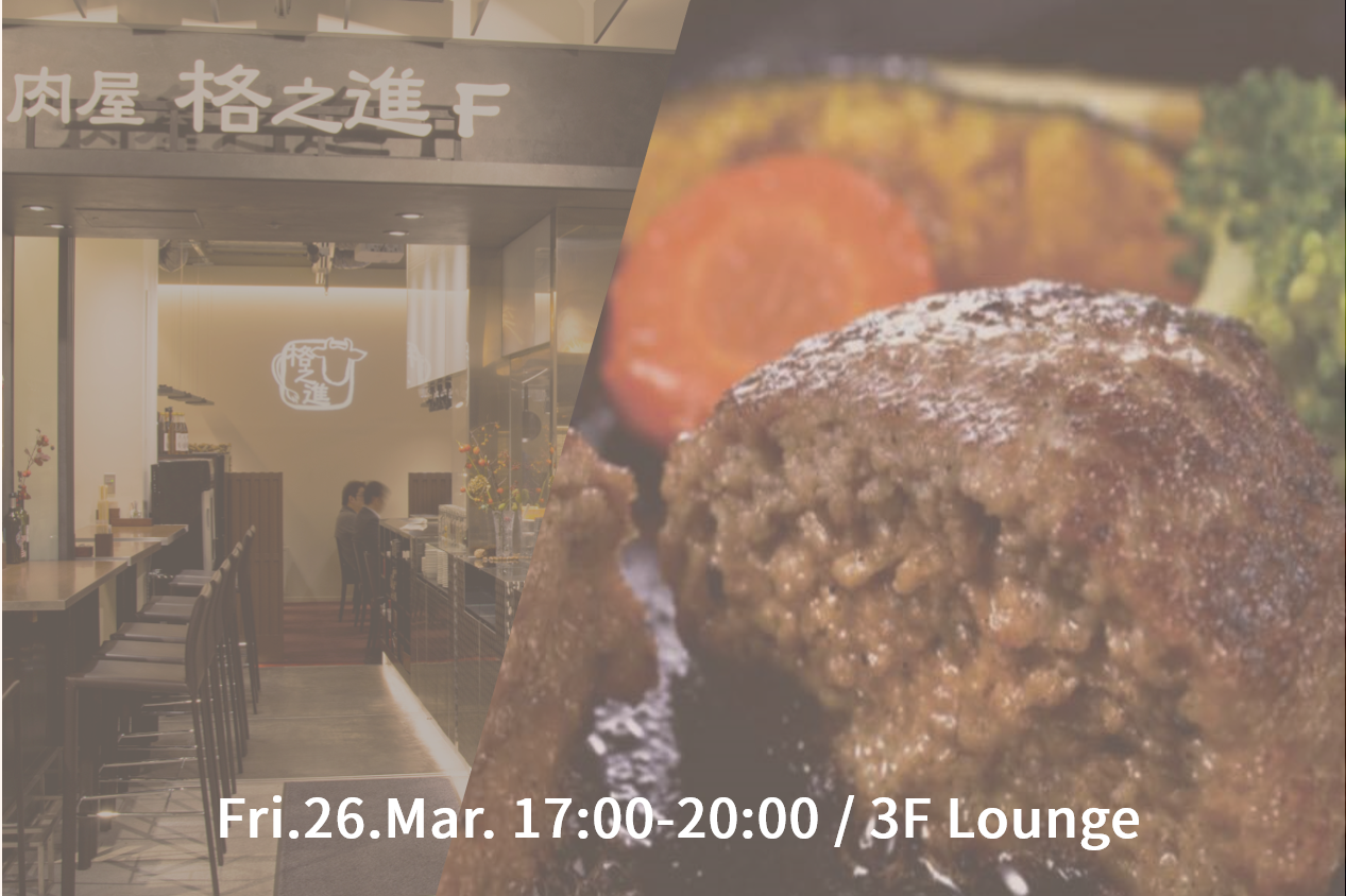 We will hold 〜Let’s eat Hamburg Steak that President of Kakunoshin “Unckle Meat” Bakes !〜 in the April “EPW Special Friday”. Please enjoy freshly baked hamburg steak of “Kakunoshin” which is the meat specialty restaurant. In addition to hamburger steak, we also serve “Tamago-kake-gohan” using the seasoning “beef sauce” created from Japanese black beef.