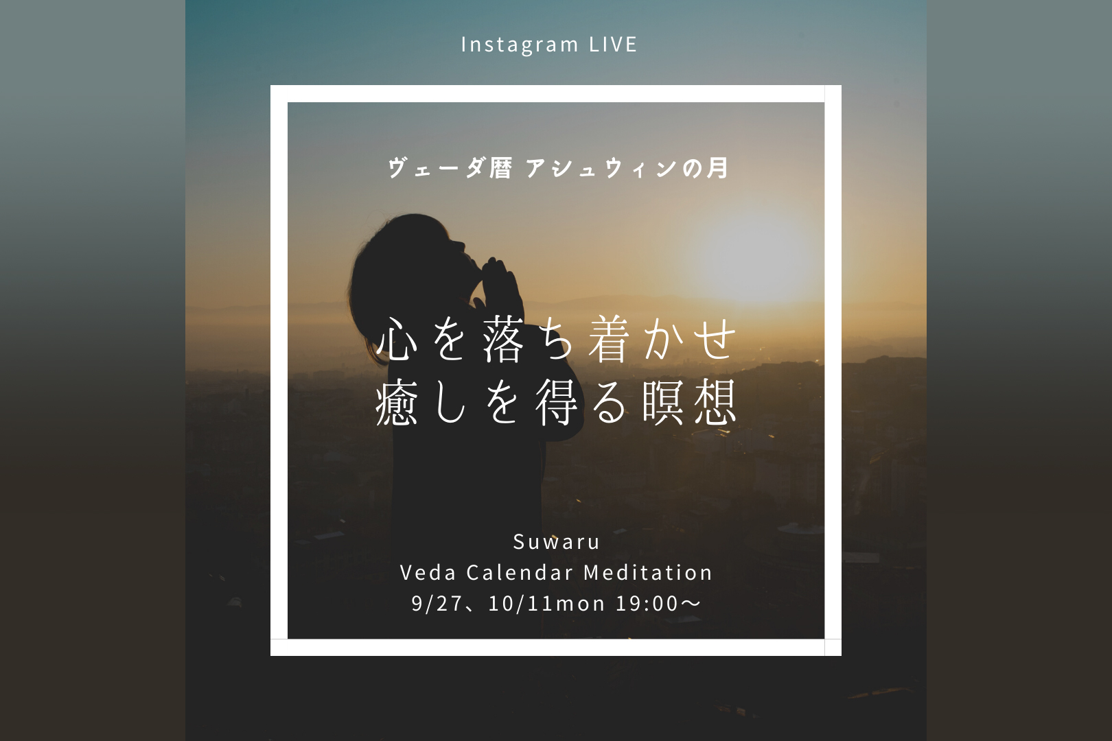 9月27日と10月11日月曜日の Veda Calendar Meditationはアシュウィンの月となります。