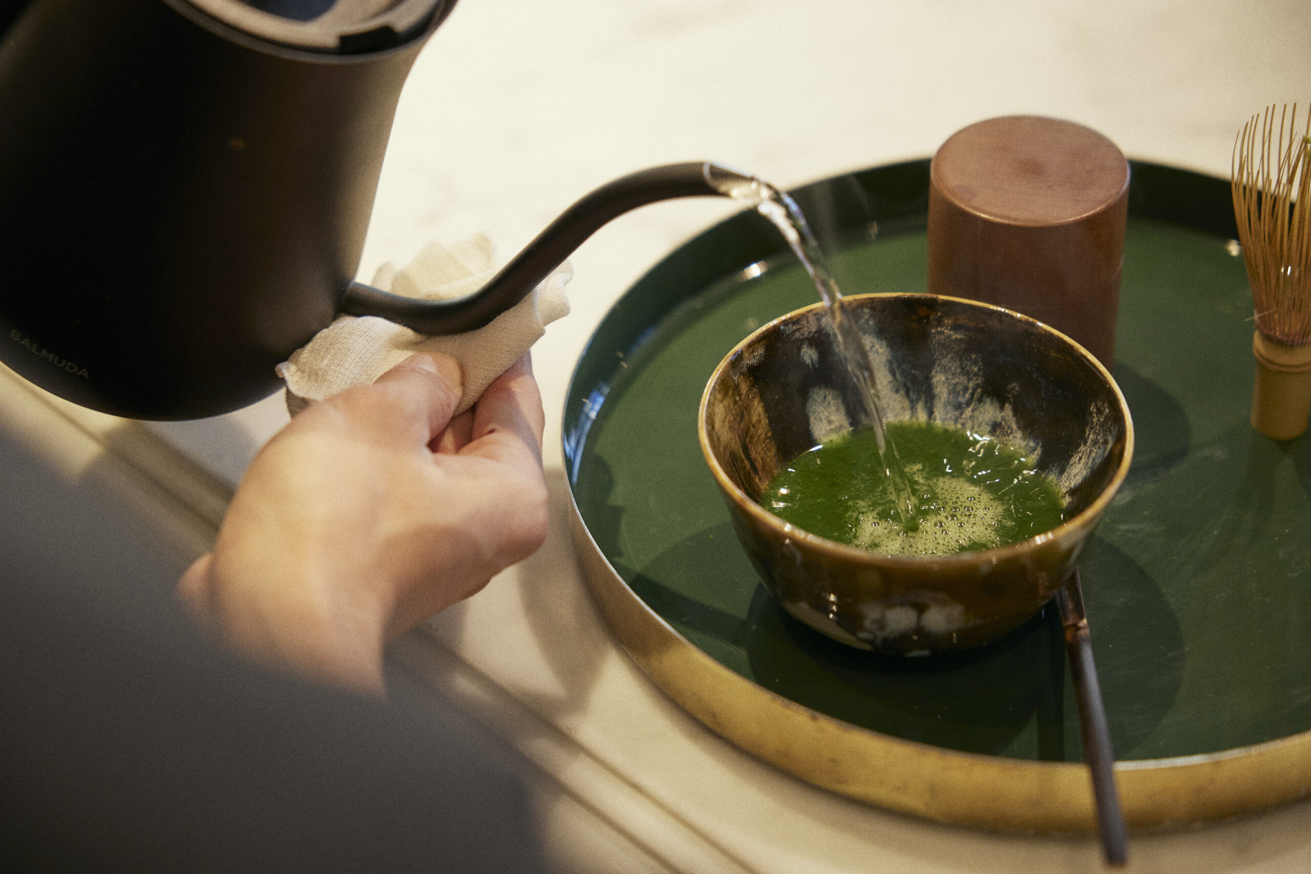 EPWメンバーのアスリート陶芸家として活躍されている山田翔太さんにお茶を点てていただき、贅沢な時間となりました。お抹茶は抹茶専門ブランド「千休」のものを使用。まろやかで抹茶の苦味をほんのりと感じる優しい味わいでした。